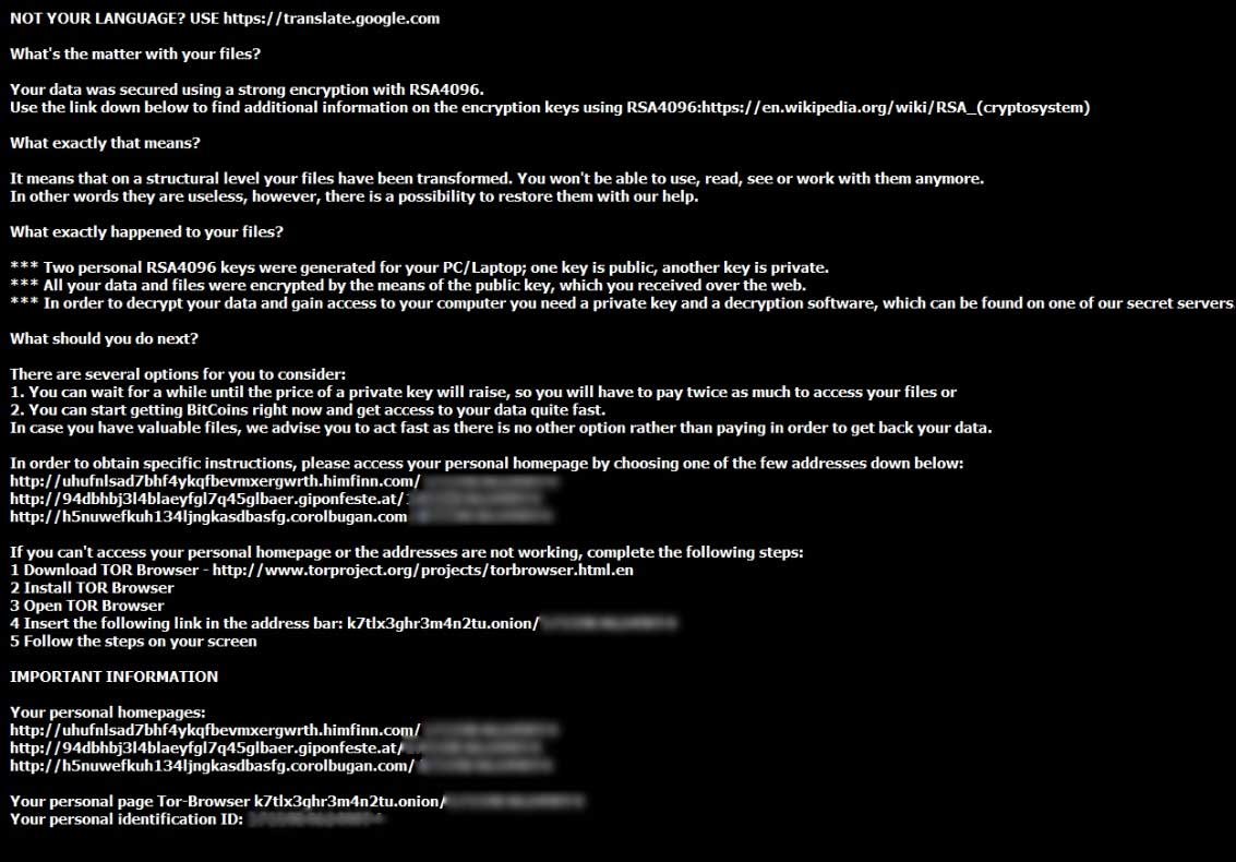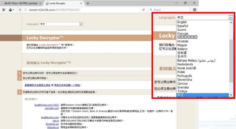 Torインストール後、脅迫者は親切にも多言語で支払い方法を教えてくれます。