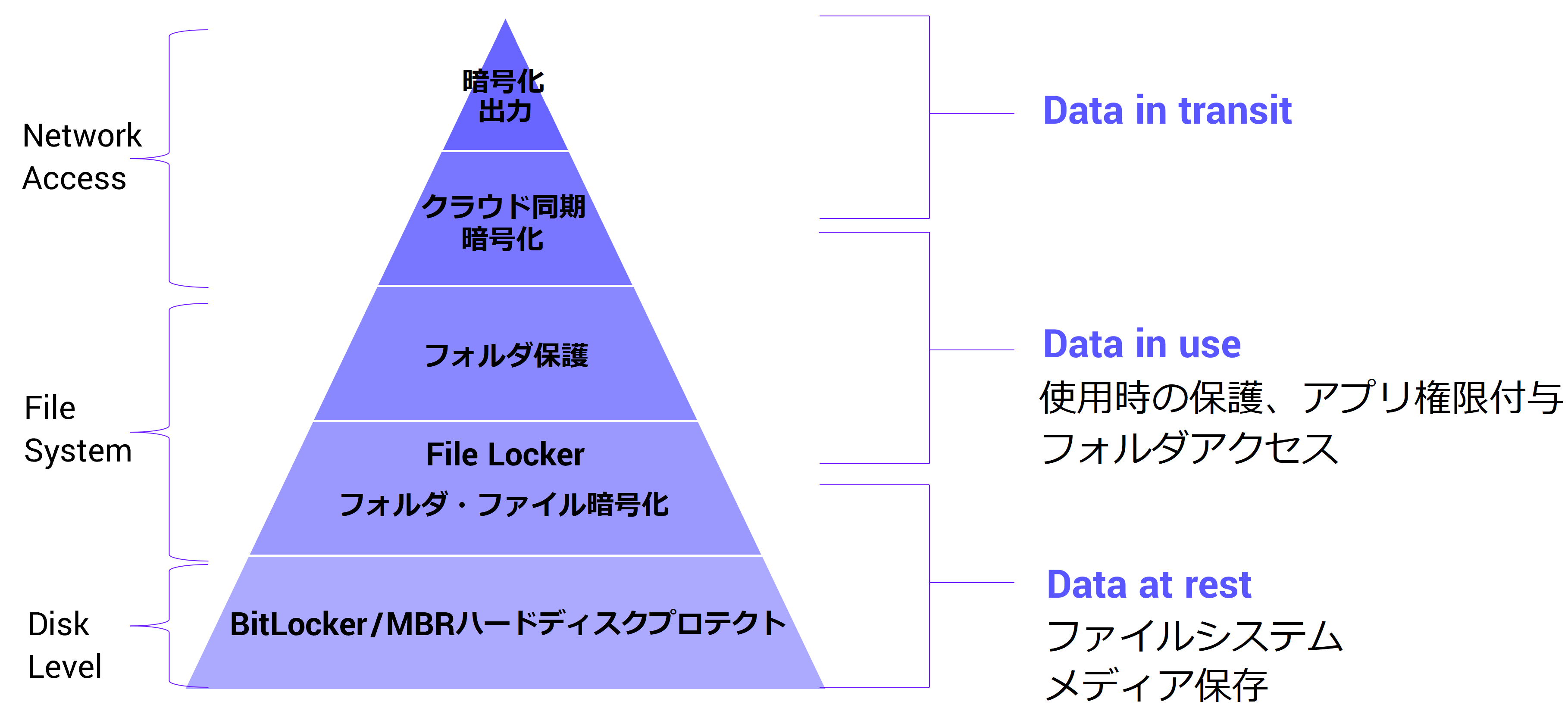 フォルダ保護機能を使用してファイルを保護し、アプリケーションのアクセスを制限することができます。 - 転送中のファイル:Data in transit