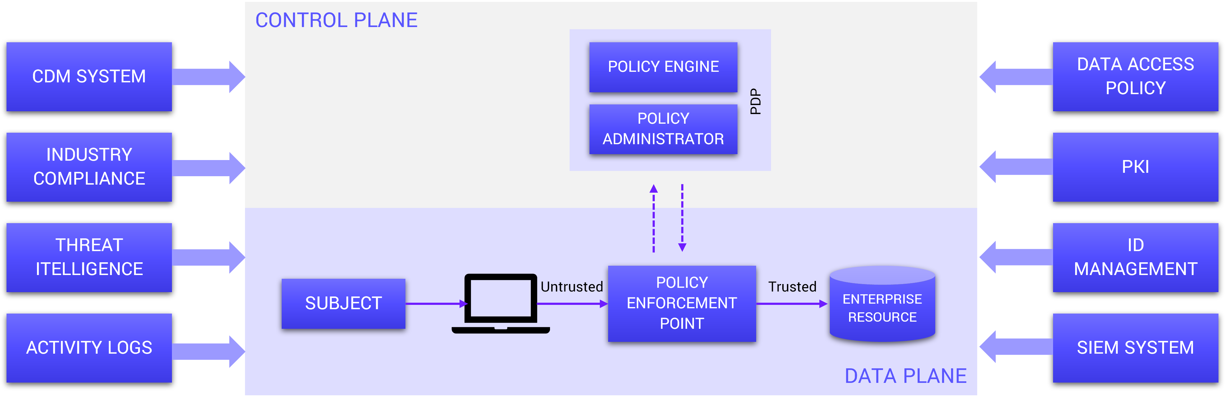 ポリシーエンジンが判断に使用するコンテキストは動的に適応し、リスクも継続的に評価され、活動は常時監視されています。これはNISTが常に強調しているゼロトラストであり、過去の信頼がずっと信頼されるわけではないことを示しています。